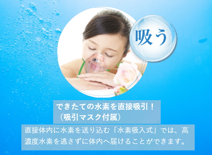 付属の専用マスクを使い、できたての水素を直接吸入できます。