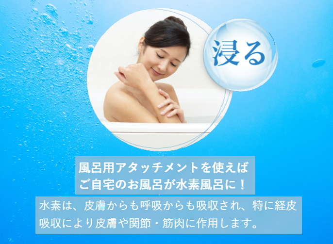 お風呂用アタッチメントを使い、ご自宅のお風呂が水素風呂になります。